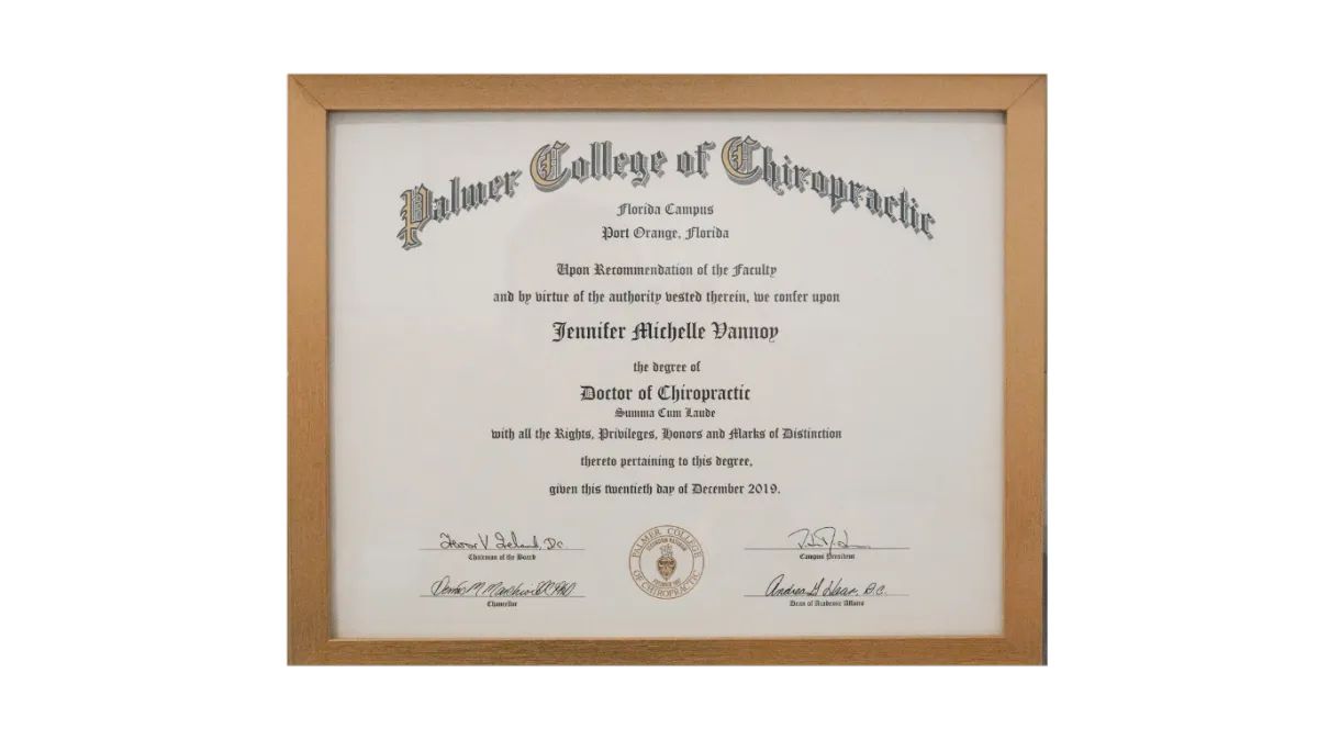 Dr. Jennifer Michelle Vannoy with Degree of Doctor of Chiropractic